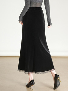 金丝绒鱼尾包臀裙松紧后腰中长裙拼结时尚半身裙秋季新款A字裙