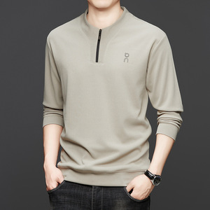 跨境直播2025秋季新款男士小V领拉链卫衣休闲纯色百搭圆领长袖t恤