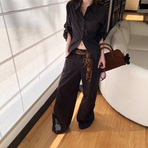 实拍 !黑色酷飒衬衫长裤套装女chic感长袖上衣休闲阔腿裤潮