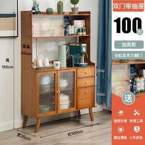 实木茶水柜北欧厨房餐边柜储物柜多功能落地多层家用客厅简约轻奢