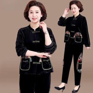 妈妈秋装洋气金丝绒套装女2025新款中老年人春秋外套中式唐装上衣