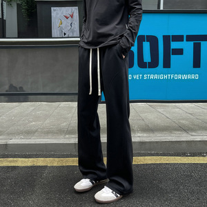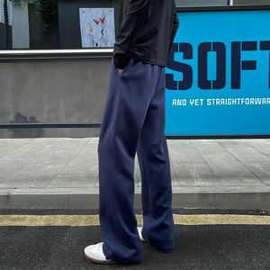 华棉拼接美式弯刀卫裤男款秋季cleanfit直筒微喇长裤休闲运动裤子