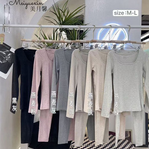美月馨8368秋冬羊毛蚕丝方领保暖内衣套装女修身显瘦内搭秋衣秋裤