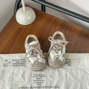 韩版儿童格子蝴蝶结德训鞋2025年秋冬季新款女童运动鞋学生休闲鞋