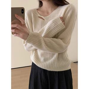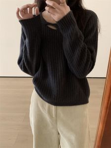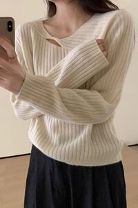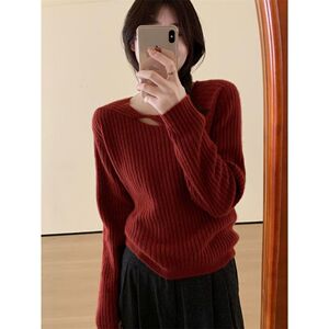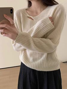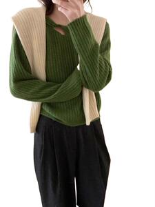镂空套头浣熊绒毛衣女春秋修身韩版内搭打底衫外穿短款针织衫