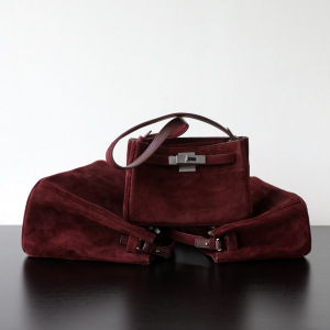 小众轻奢跨境高级感复古麂皮凯莉包休闲羊猄绒小方包单肩斜挎包