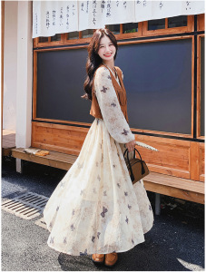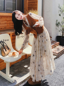 哥家商场同款女装2025秋季旅游穿搭美拉德裙子法式长袖连衣裙套装