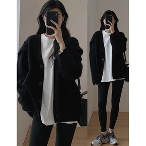 哥家商场同款女装2025秋季针织衫外搭中长款慵懒复古毛衣外套上衣