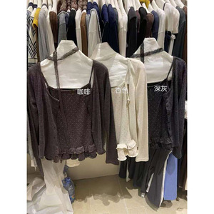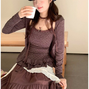 十三行气质甜美波点吊带长袖开衫外套两件套女蕾丝荷叶边套装秋季