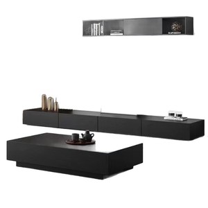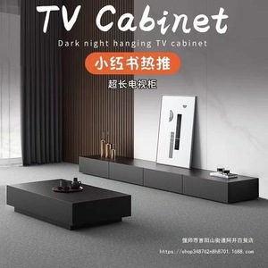 意式轻奢极简电视柜落地黑色现代简约小户型高档套装悬浮电视柜