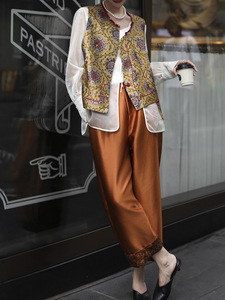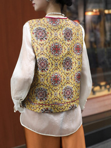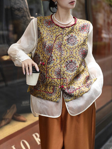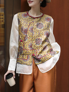 新中式原创高货桑蚕丝螺钿唐锦马夹+订珠花萝欧根缎打底衫两件套