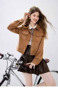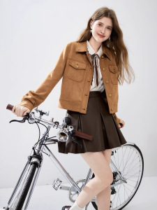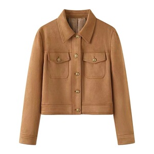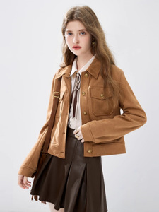 秋水女装美拉德仿麂皮绒短款外套2025年秋装新款工装夹克外搭