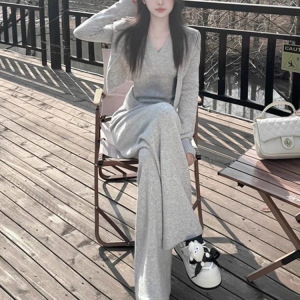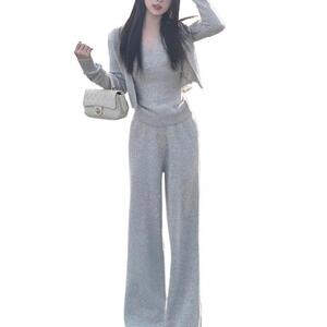 2025小香风灰色慵懒高级感减龄洋气显瘦休闲运动套装春秋三件套女