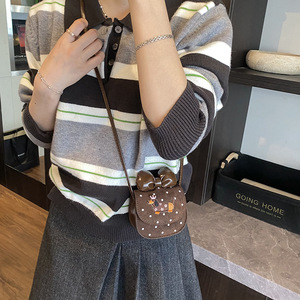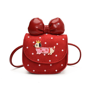 卡通可爱小狗男女童单肩包洋气波点宝宝斜挎包甜美蝴蝶结儿童包包