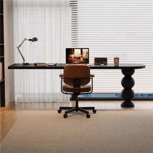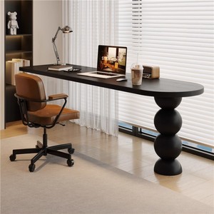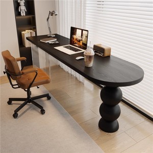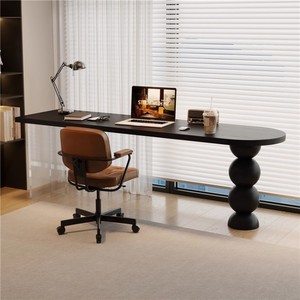 实木长条桌卧室家用黑色办公写字电脑桌学生儿童双人阅读学习书桌