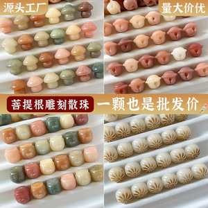 天然菩提根雕刻蘑菇小配件diy手工串珠文玩手串手链配饰散珠批发
