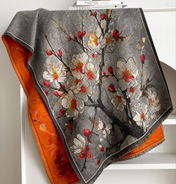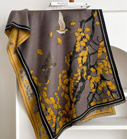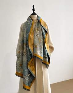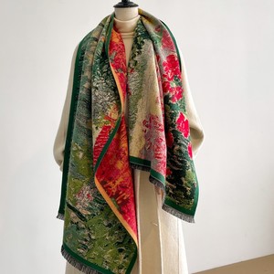 她信服饰跨境 仿羊绒印花油画外搭披肩流苏披肩秋冬季围巾