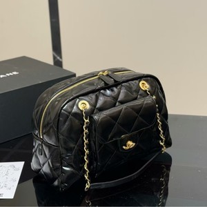 新款小香风高版本菱格保龄球波士顿经典时尚链条真皮腋下单肩女包