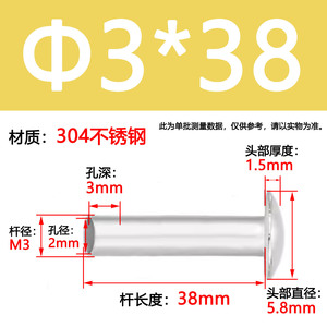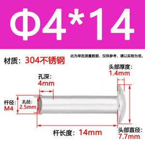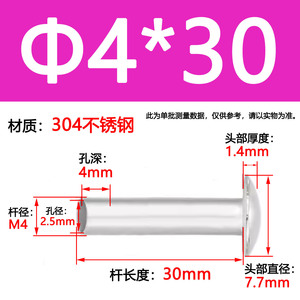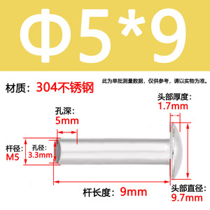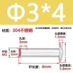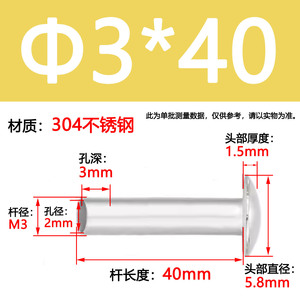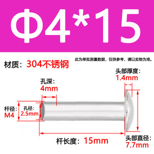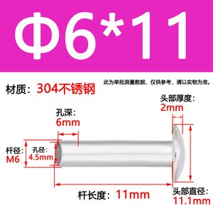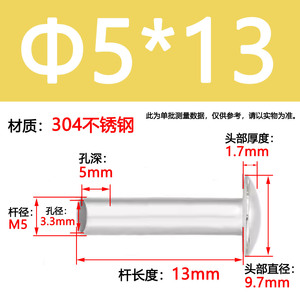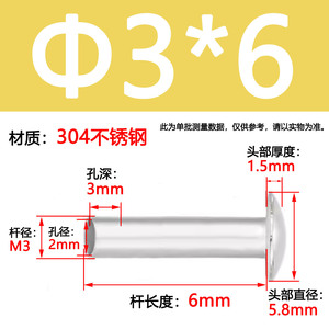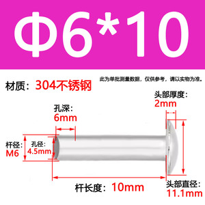 GB873大扁头半空心铆钉304不锈钢半圆头空心铆钉圆头