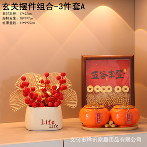 财源广进+五谷丰登+好柿发生+红果盆栽