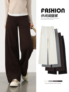 可可棕加绒加厚西装裤女2025新款秋冬高腰直筒裤羊绒羊毛阔腿裤女