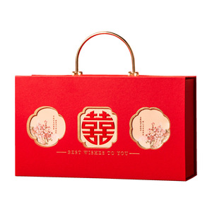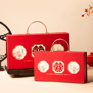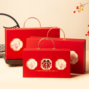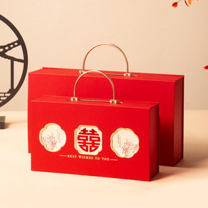新中式喜庆伴手礼礼盒翻盖方形烫金喜糖盒子酒宴婚礼订婚礼品盒子