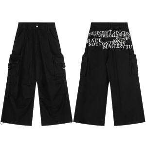美式复古侧边大口袋工装裤子女辣妹宽松慵懒松弛感字母印花拖地裤