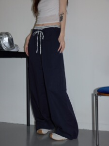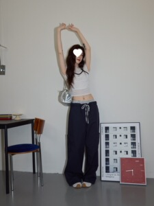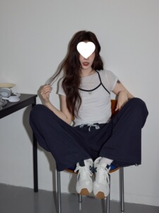 吵吵家设计感假两件休闲裤女2025夏慵懒宽松垂感直筒拖地阔腿裤