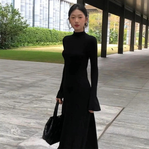 黑色高领针织连衣裙子女早春装新款春秋季高级感修身内搭长裙