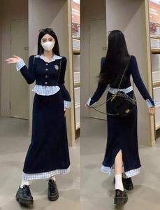 韩系学院风假两件上衣半身裙套装女开春连衣裙穿搭一整套可盐可甜
