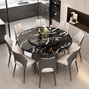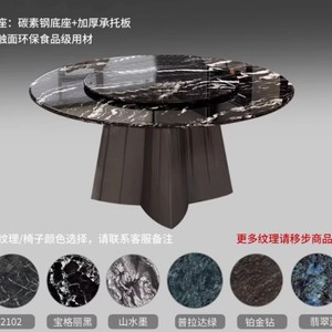 奢石餐桌带转盘大理石餐桌椅组合圆桌餐桌家用超晶石圆形餐桌椅
