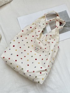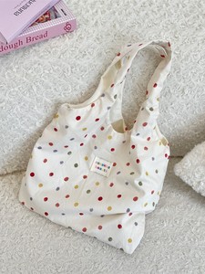 58244 彩色波点帆布包女生大容量单肩托特包学生上课通勤背心包