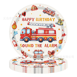 新款消防车儿童节日派对一次性纸盘纸杯纸巾消防员场地装饰用品