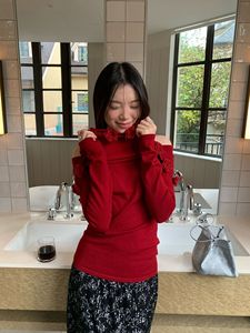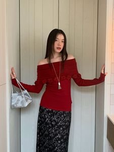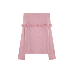 诠释美 NEWOPEN 25秋法式温柔甜美一字领立体花朵装饰毛衣女F6587