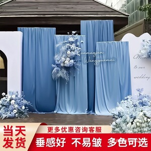 婚庆吊顶布幔牛奶丝弹力布装饰布料蓝色系韩式婚礼堂背景帷幔