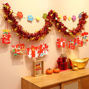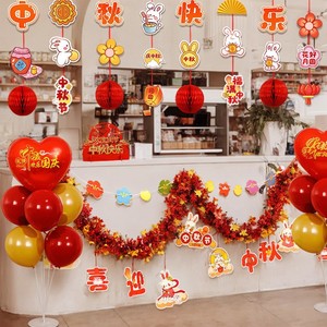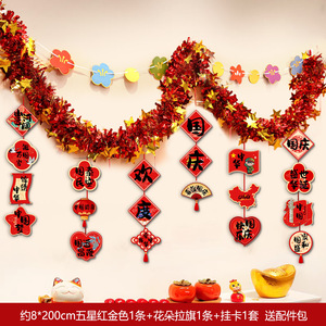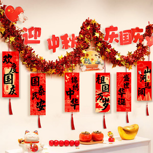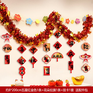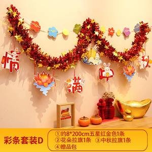 国庆中秋节装饰品氛围场景布置商场门店拉花彩条吊饰背景墙挂饰条