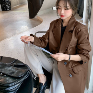 黑色加厚皮衣西装外套女秋冬2025新款高级感皮机车服女外套大衣