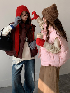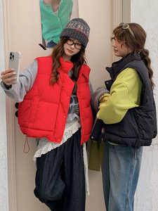 宽松棉马夹女短款2025秋冬新款纯色棉背心立领韩版宽松休闲棉马甲
