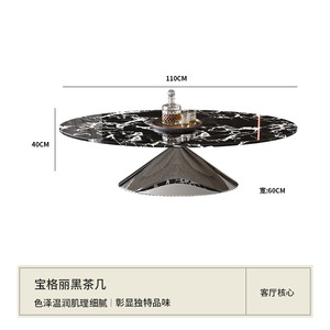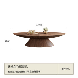意式极简茶几现代简约中古风轻奢小户型胡桃木色家具椭圆套装茶桌