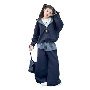 女童秋装套装中大童时髦冲锋衣2025新款儿童秋季连帽拼格子两件套