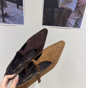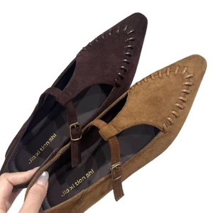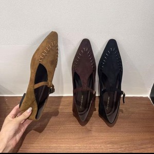 复古尖头玛丽珍鞋女2025秋季新款百搭软底绒面低跟尖头单鞋懒人鞋