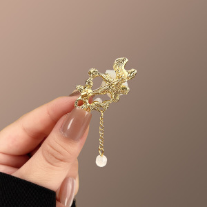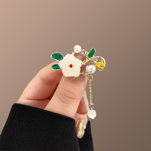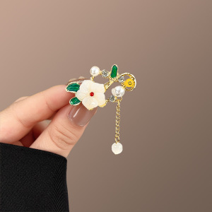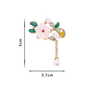 中国风复古时尚珐琅花朵流苏胸针高档女精致珍珠流苏别针气质配饰