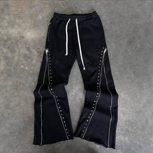 美式跨境暗黑风秋冬季设计感拉链裤腿复古休闲裤男女款宽松长裤