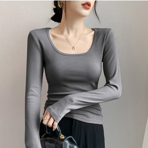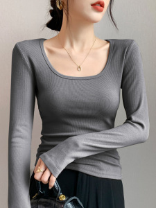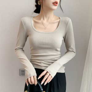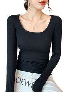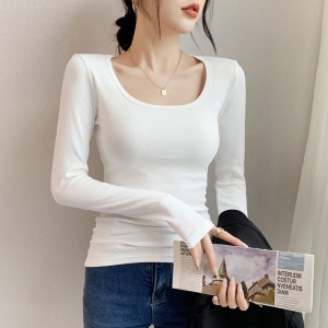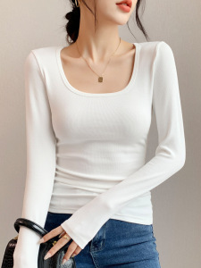 2025新款白色修身长袖气质显瘦上衣大衣内搭秋冬方圆领打底衫女
