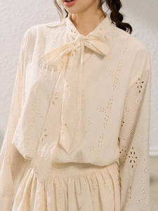 H2AN1 STUDIO丨法式镂空花朵飘带领衬衫女外套显瘦蛋糕裙半裙套装
