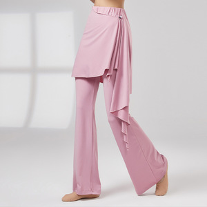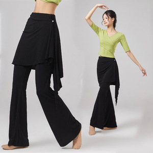 舞蹈喇叭裤屁帘假两件裙裤女古典舞裤子长裤垂感中国舞形体练功服