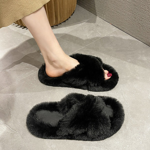 2025新款外穿女生ins厚底毛毛拖鞋秋冬薄底时尚高级软底轻奢女鞋