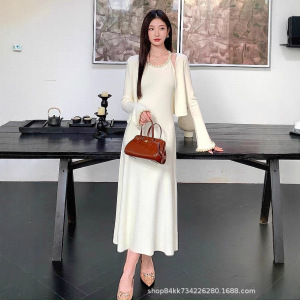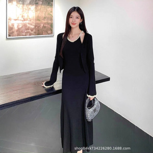 2025 新款法式小香风气质高级感名媛连衣裙羊毛针织长裙两件套