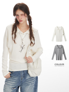 HeyHenry 韩系春秋季连帽长袖上衣女修身减龄设计感内搭打底衫T恤