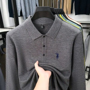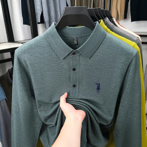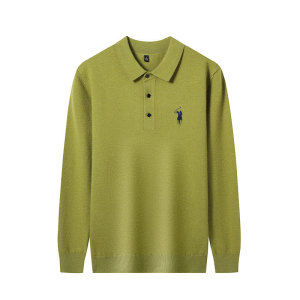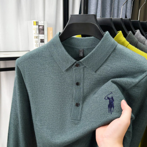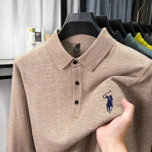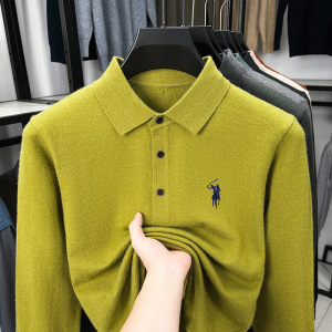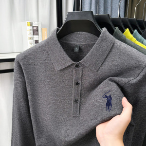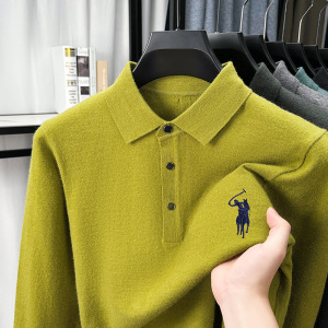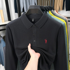 原版外贸男士针织polo衫秋季小马刺绣翻领休闲百搭长袖T恤男上衣